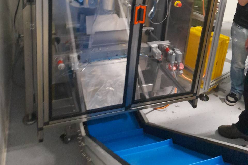 Om ervoor te zorgen dat elke zak precies 4 kilo friet bevat, hebben we een slimme oplossing geïmplementeerd: meerdere afgewogen stortingen per zak. Het gewicht wordt hierdoor geleidelijk opgebouwd.